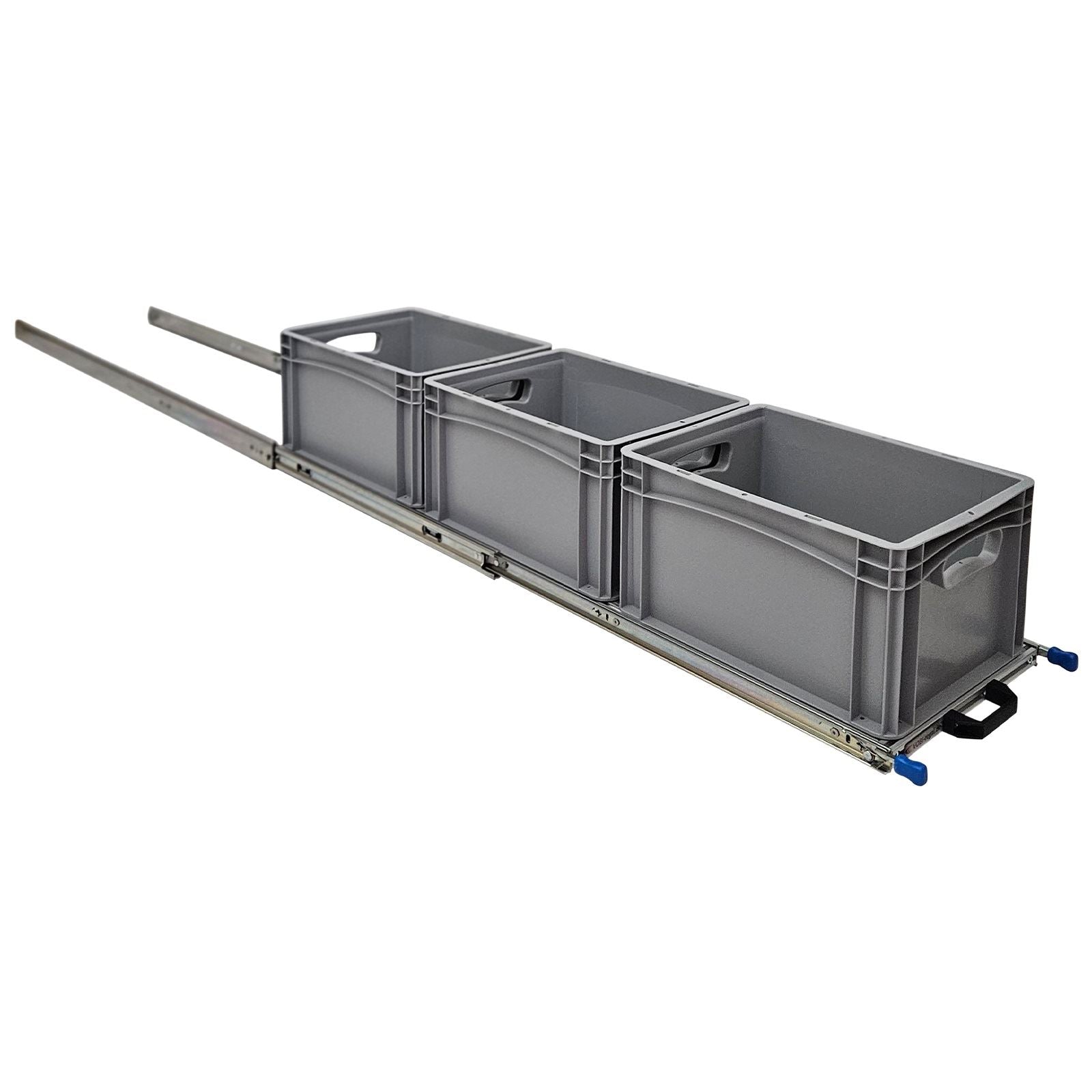 Dieser Auszug ist die ideale Lösung für alle, die ihren Kastenwagen individuell gestalten möchten. Ohne Boxen geliefert, bietet er maximale Flexibilität für maßgeschneiderte Eigenlösungen im Heckbereich.
