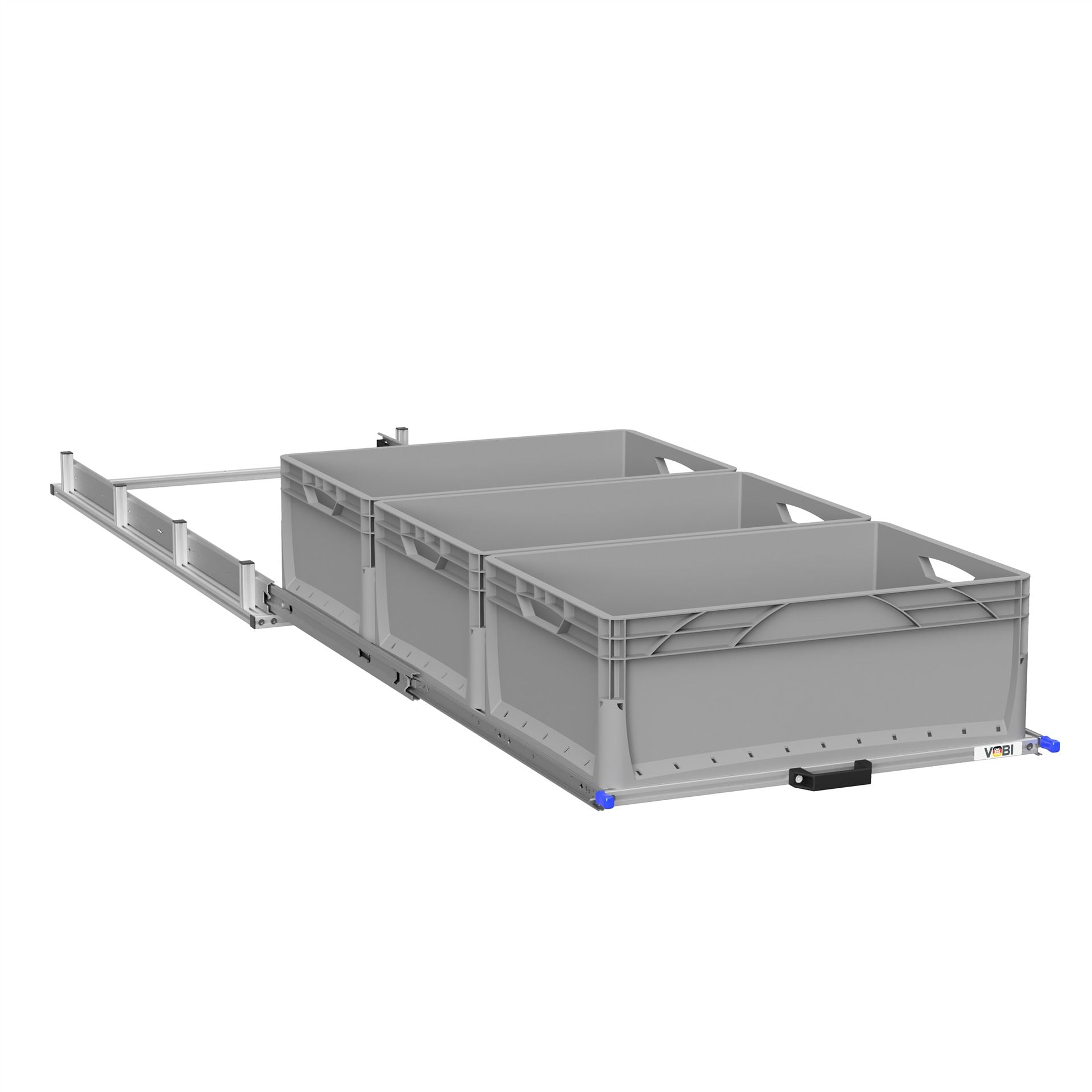 Dieser Auszug ist die ideale Lösung für alle, die ihren Kastenwagen individuell gestalten möchten. Ohne Boxen geliefert, bietet er maximale Flexibilität für maßgeschneiderte Eigenlösungen im Heckbereich.