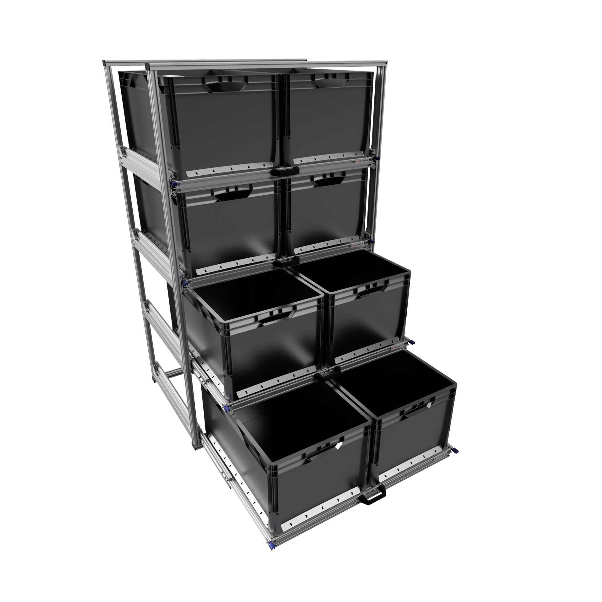 oder 4 Boxen 600x400mm und 8 Boxen 400x300 mm je Ebene.