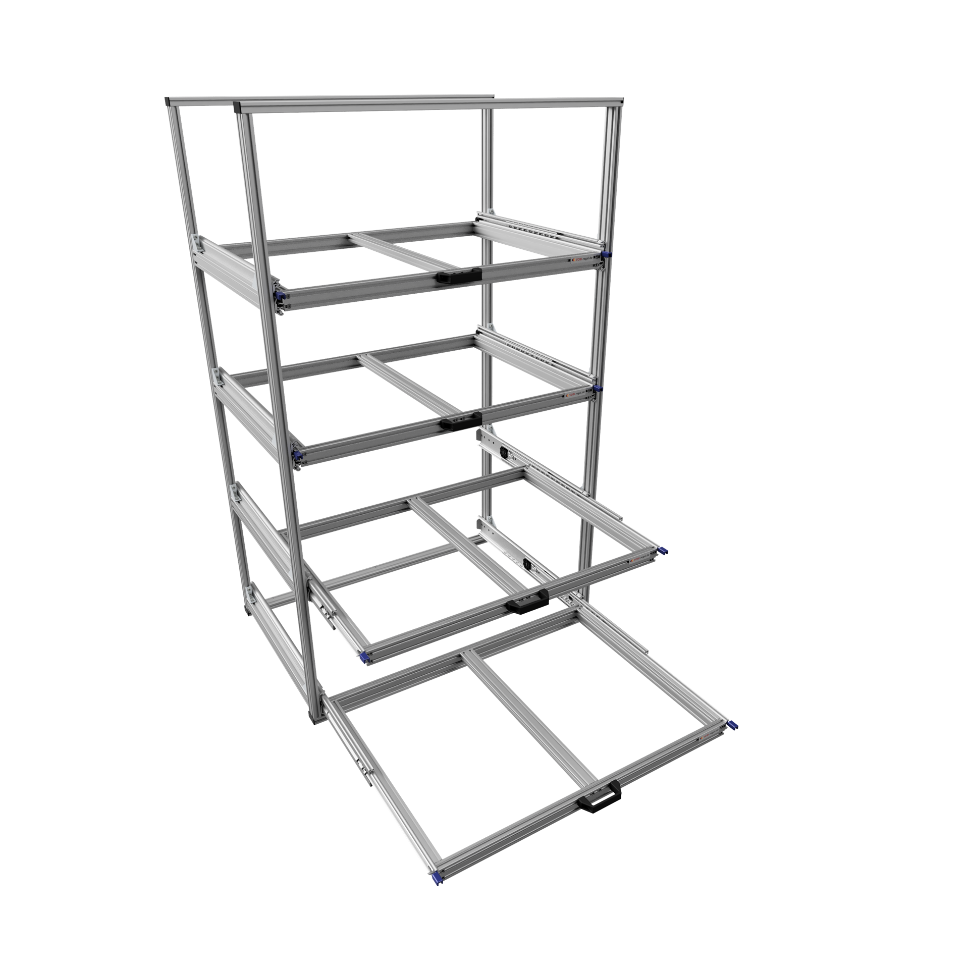 Sie können die Anzahl der Regalböden selbst bestimmen. Je höher das Regal, desto mehr Auszüge/Regalböden sind möglich.