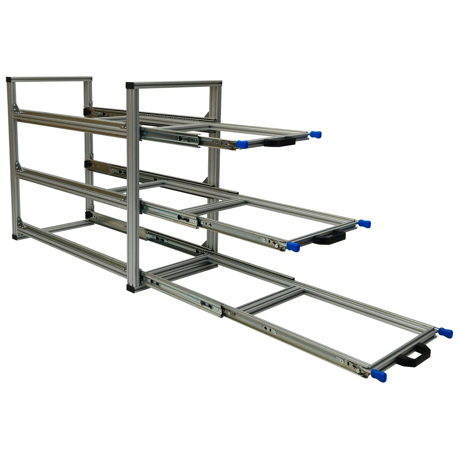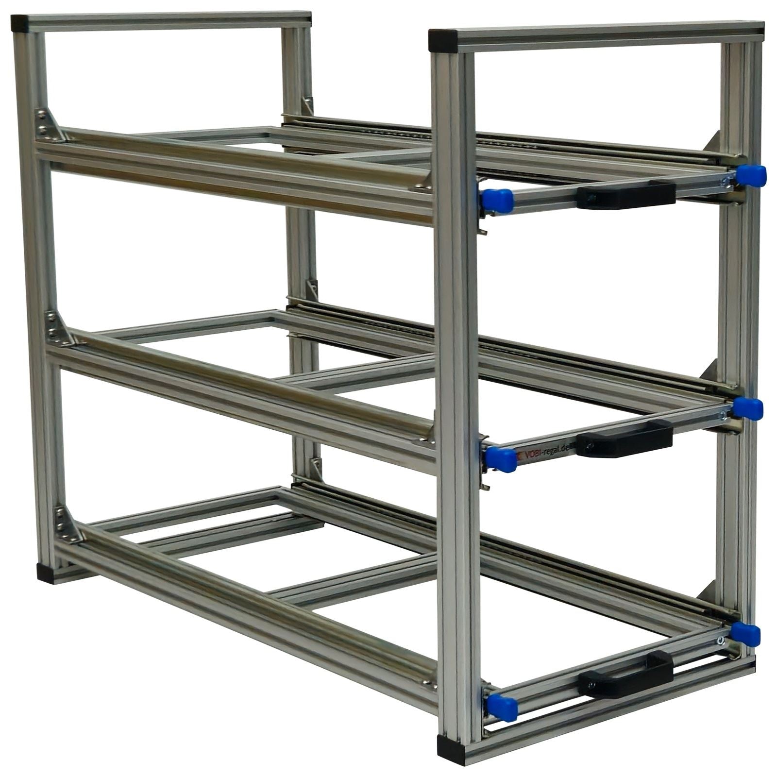 Sie können die Anzahl der Regalböden selbst bestimmen. Je höher das Regal, desto mehr Auszüge/Regalböden sind möglich.