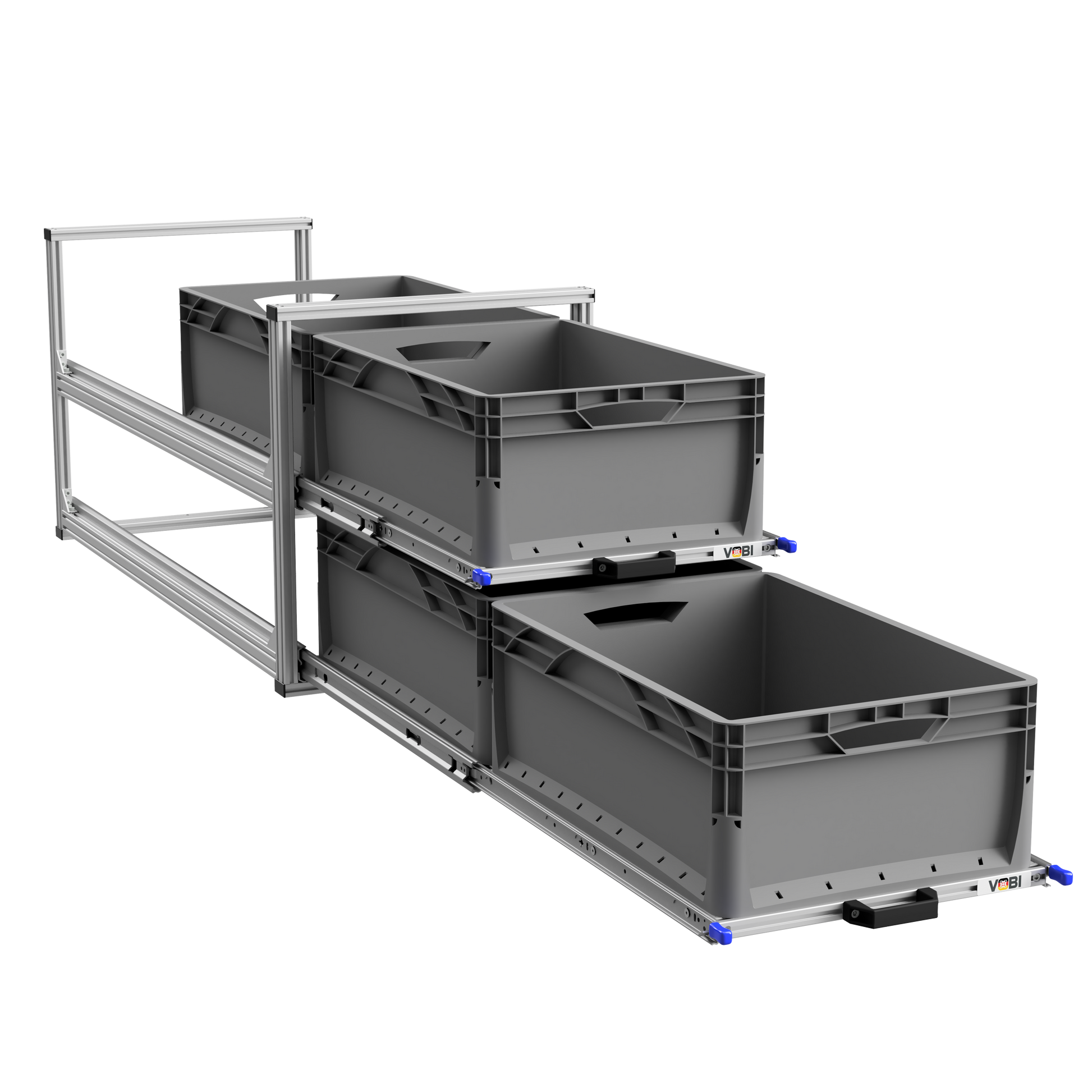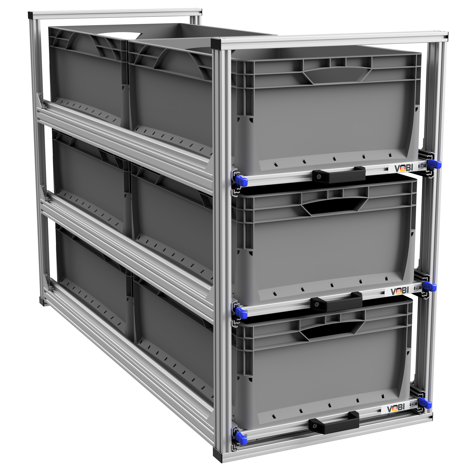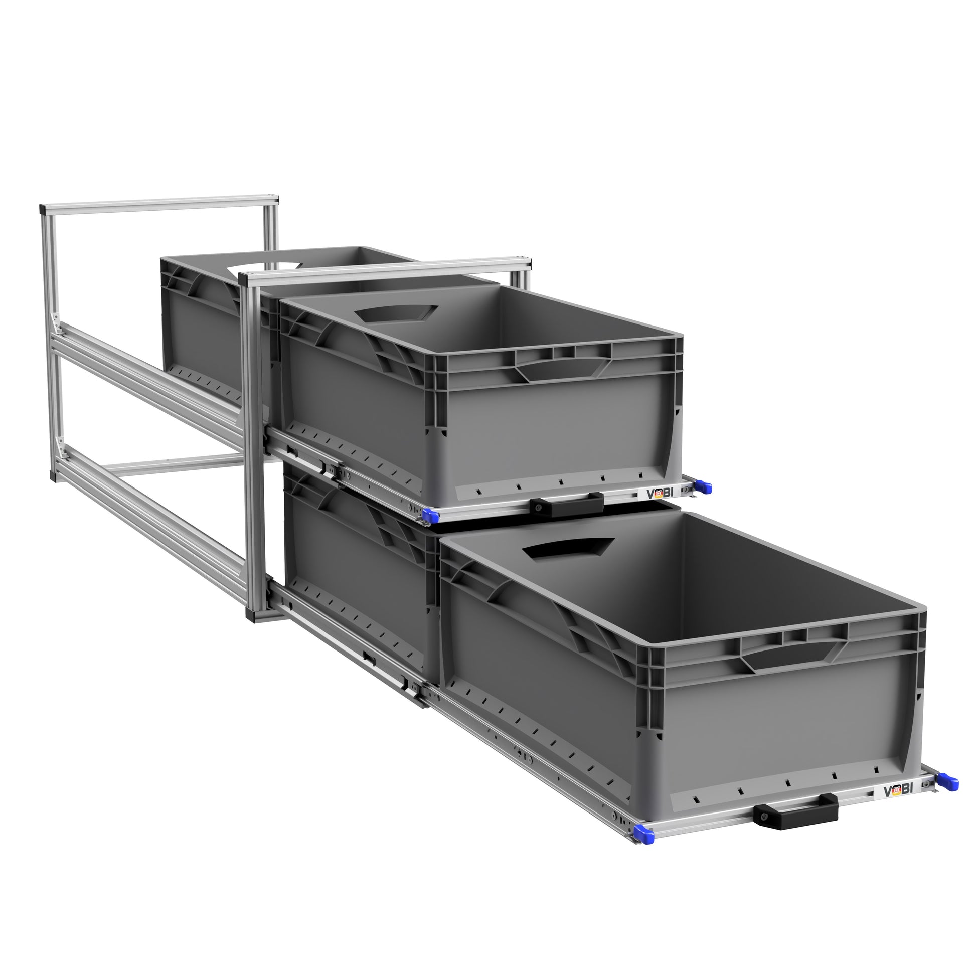 ✓ Ebenen stufenlos in der Höhe verstellbar, je nach Höhe der gewünschten Eurobox