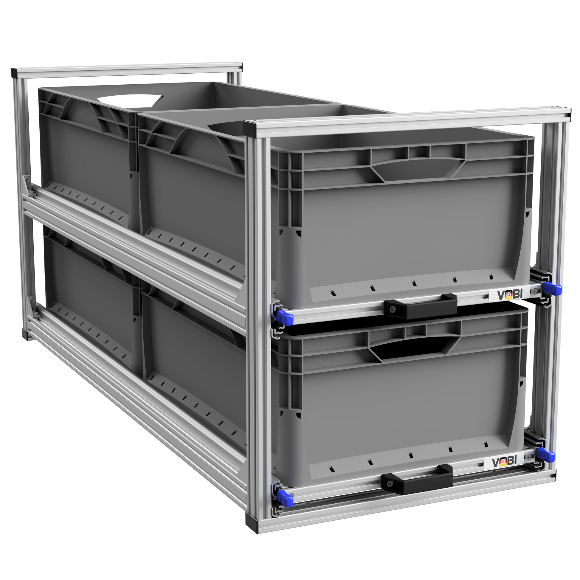 oder 2 Boxen 600 x 400 mm, und 4 Boxen 400 x 300 mm je Ebene.