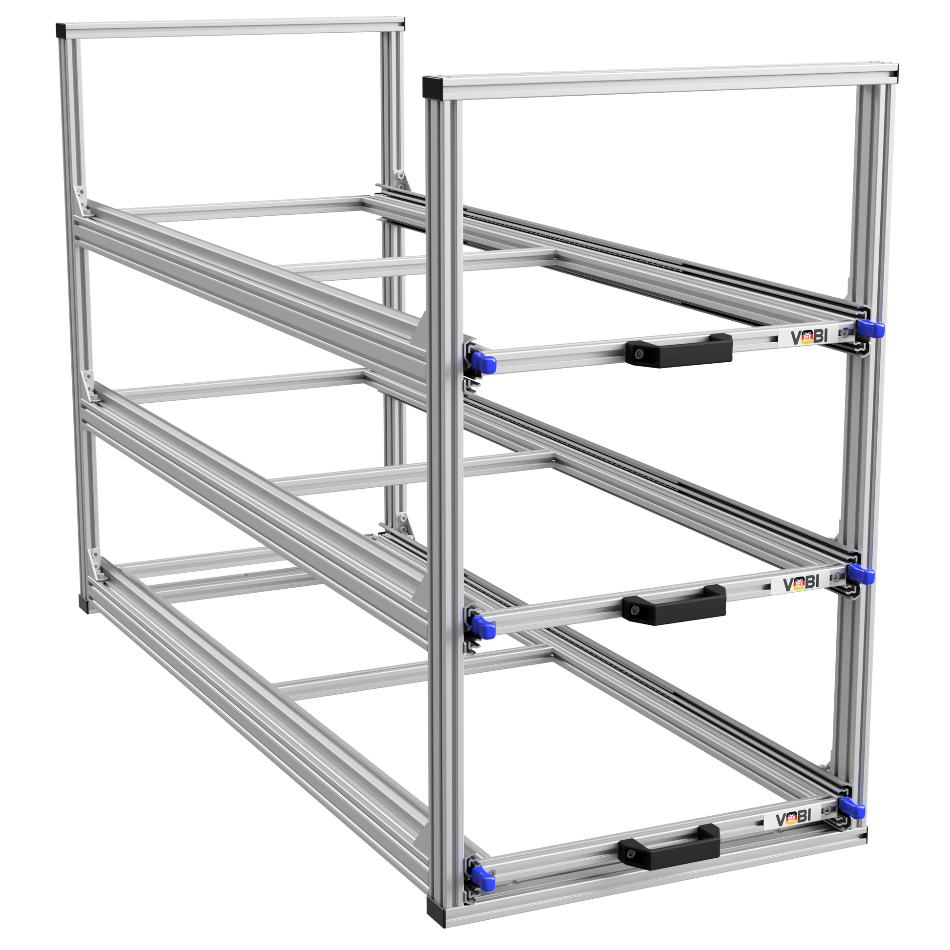 Sie können die Anzahl der Regalböden selbst bestimmen. Je höher das Regal, desto mehr Auszüge/Regalböden sind möglich.