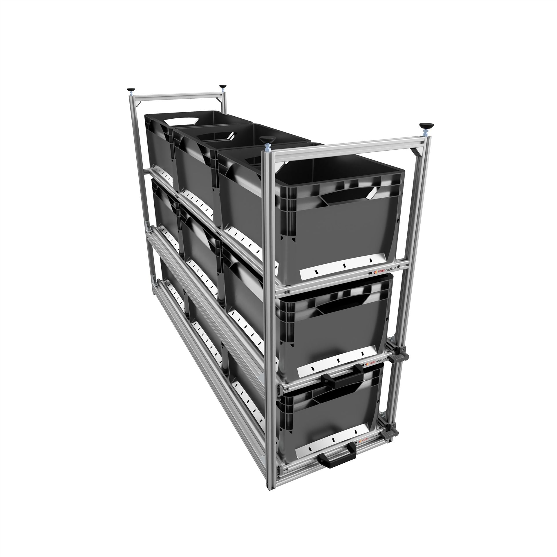 ✓ Ebenen stufenlos in der Höhe verstellbar, je nach Höhe der gewünschten Eurobox
