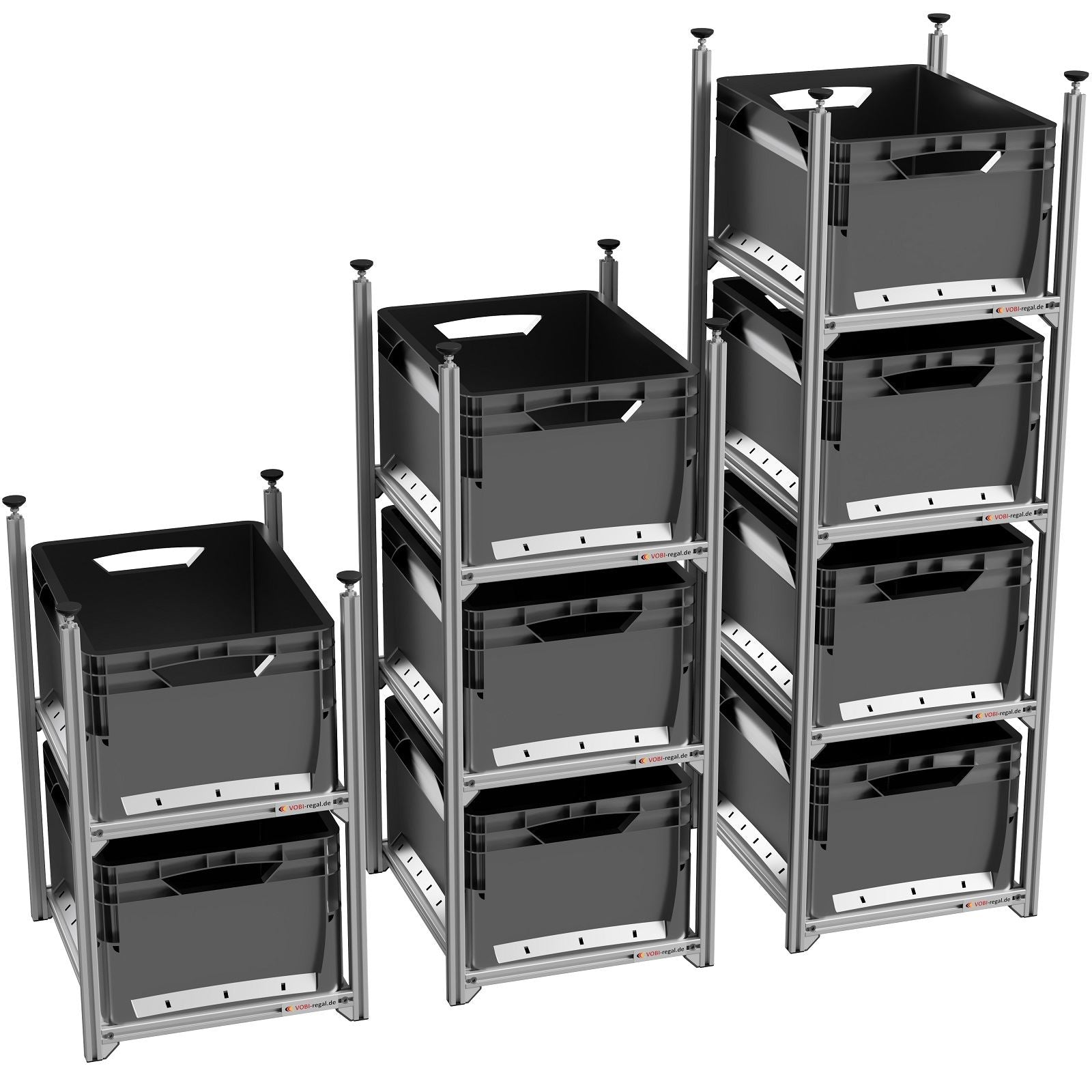 ✓ Ebenen stufenlos in der Höhe verstellbar, je nach Höhe der gewünschten Eurobox