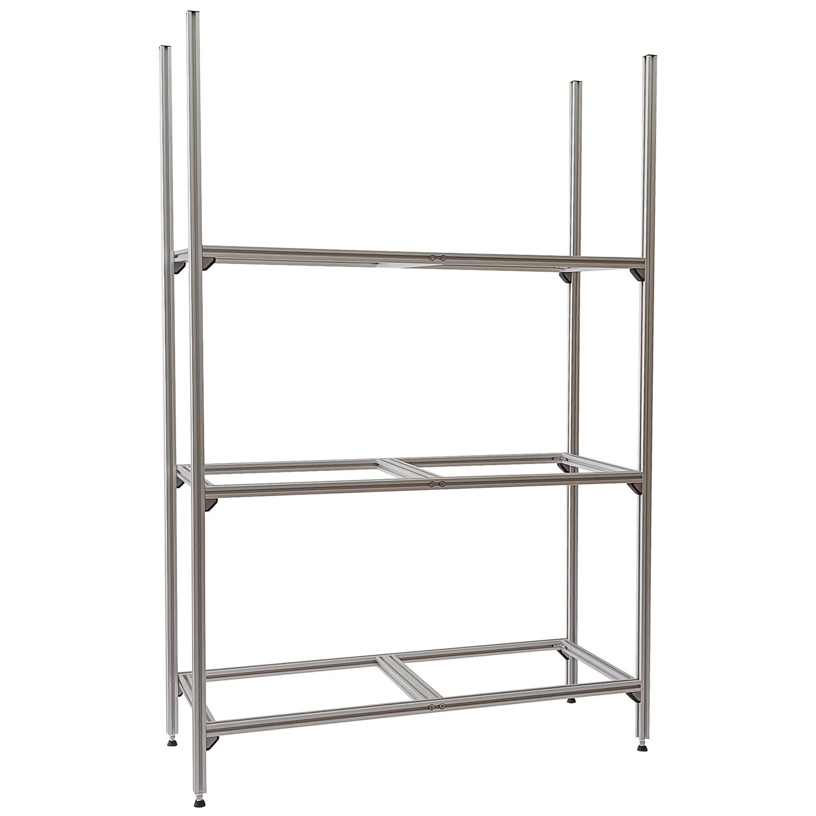 Die Profile sind für den Zusammenbau bereits vorgebohrt und mit Gewinden für die Schrauben versehen. Das Regal muss lediglich gemäß der Anleitung zusammengebaut und verschraubt werden.