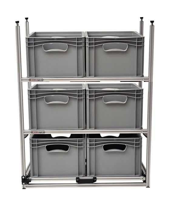 ✓ Ebenen stufenlos in der Höhe verstellbar, je nach Höhe der gewünschten Eurobox