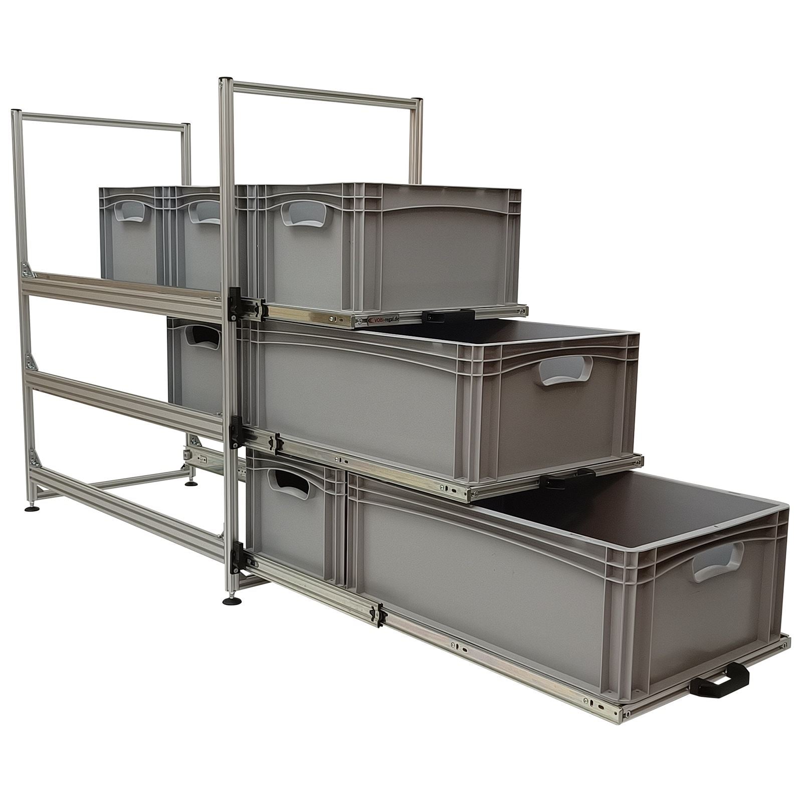Je Ebene können auch 3 Boxen 300 x 400 mm nebeneinander gestellt werden.