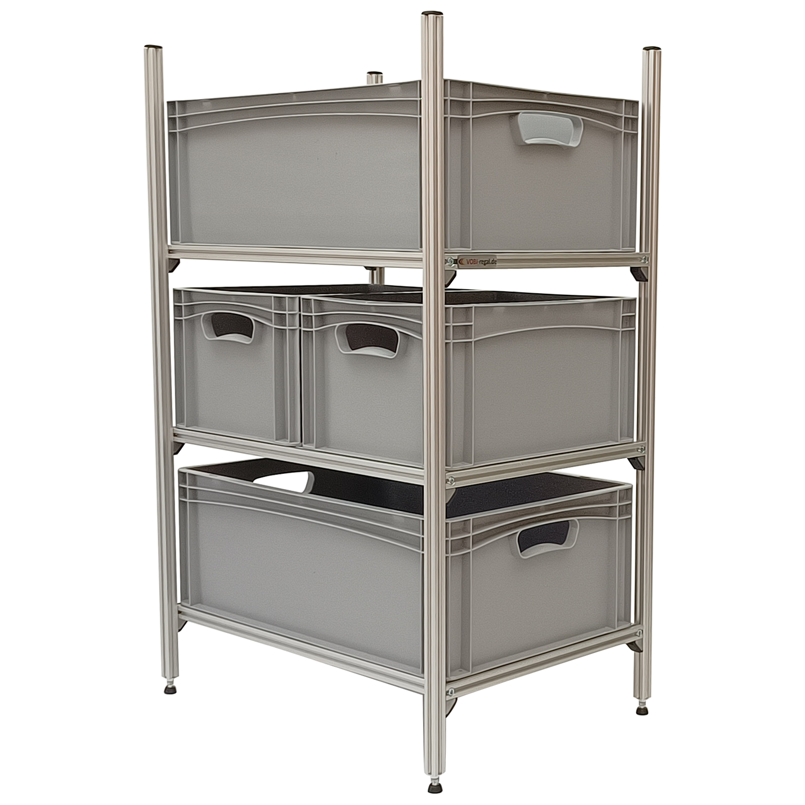 ✓ Ebenen stufenlos in der Höhe verstellbar, je nach Höhe der gewünschten Eurobox